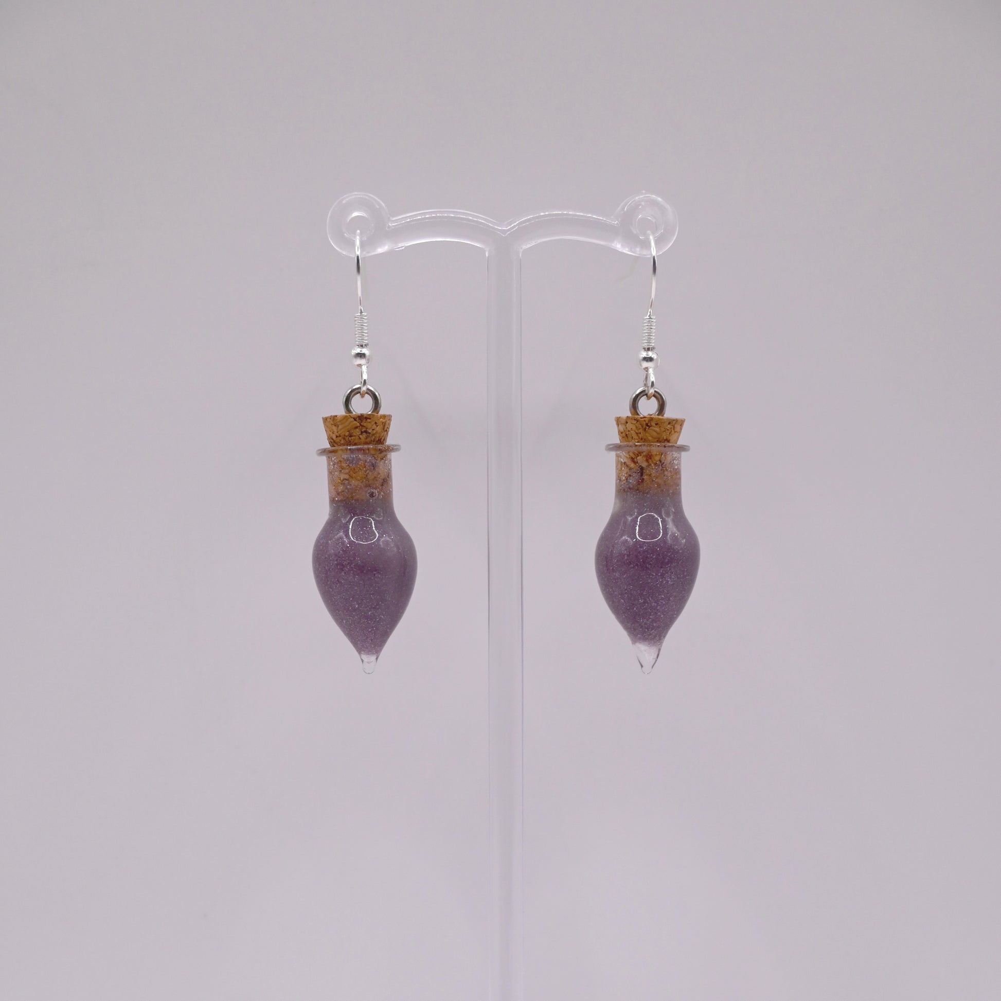 Dreamy lavender 'potion' encapsulated in tiny vials, glittering in subtle holographic silver specs. When charged with sunlight or UV light, the 'potion' glows in the dark in a deep violet colour to guide you into a good night's sleep. Great when paired with the Limited Edition Wanderlust necklace.